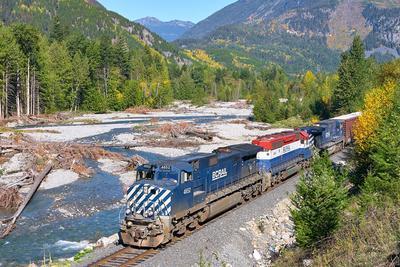 BC Rail Dash 8-44CW puzzle, based on an original photo by Christian Waelti (photo copyright Christian Waelti -- used with permission). Photographed at Gramsons, British Columbia, October 1, 2004.