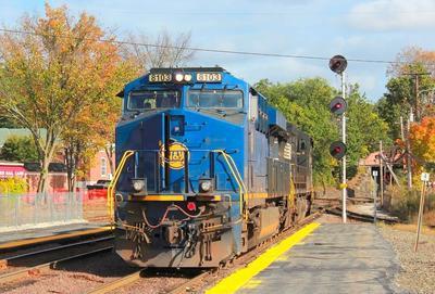 Norfolk Southern ES44AC puzzle, based on an original photo by Ryan Bullen (photo copyright Ryan Bullen -- used with permission). Photographed at Ayer, Massachusetts, October 14, 2017.