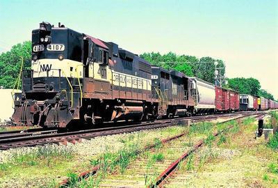 Norfolk & Western GP38AC puzzle, based on an original photo by George M. Stupar (photo copyright George M. Stupar -- used with permission). Photographed at Hobart, Indiana, June, 1984.