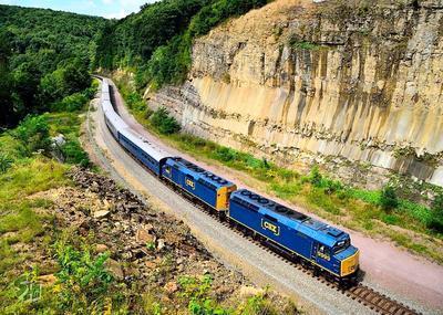 CSX Transportation (CSXT) F40PH puzzle, based on an original photo by Scooter Hovanec (photo copyright Scooter Hovanec -- used with permission). Photographed at Pinkerton, Pennsylvania, August 30, 2017.