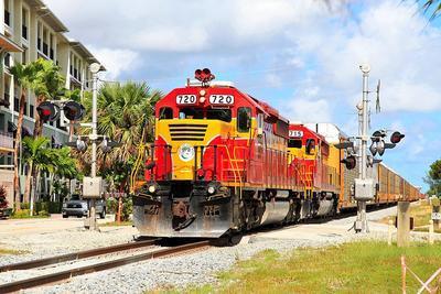 Florida East Coast Railroad (FEC) SD40-2 puzzle, based on an original photo by Dr Stefan Petersen (photo copyright Dr Stefan Petersen -- used with permission). Photographed at Delray Beach, Florida, November 6, 2015.