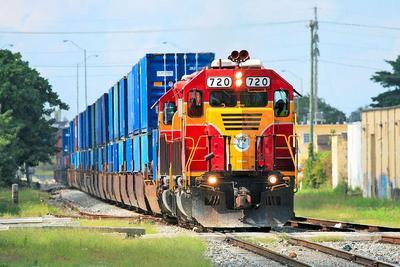 Florida East Coast Railroad (FEC) SD40-2 puzzle, based on an original photo by Dr Stefan Petersen (photo copyright Dr Stefan Petersen -- used with permission). Photographed at Miami, Florida, November 11, 2015.