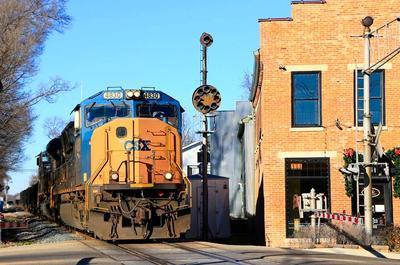 CSX Transportation (CSXT) SD70MAC puzzle, based on an original photo by Steven Mckay (photo copyright Steven Mckay -- used with permission). Photographed at Tipp City, Ohio, December 19, 2015.