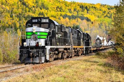 Chemin de Fer de la Gaspésie RS-18 puzzle, based on an original photo by Dannick Fournier (photo copyright Dannick Fournier -- used with permission). Photographed at Nouvelle, Quebec, October 8, 2017.