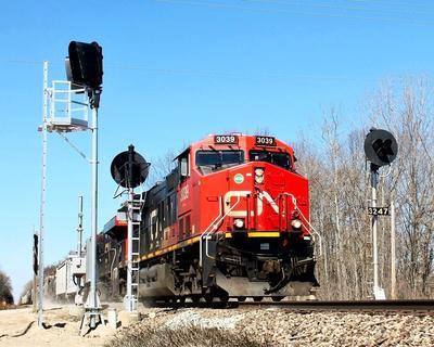 Canadian National Railway ET44AC puzzle, based on an original photo by Mike Molnar (photo copyright Mike Molnar -- used with permission). Photographed at Goodells, Michigan, April 22, 2018.