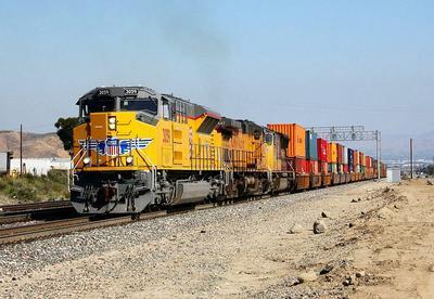 Union Pacific SD70ACe-T4 puzzle, based on an original photo by Matthew Griffin (photo copyright Matthew Griffin -- used with permission). Photographed at Verdemont, California, May 15, 2018.