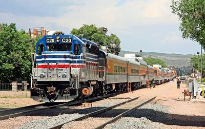 Royal Gorge Railroad RP40-2C puzzle, based on an original photo by Shelley Hunter (photo copyright Shelley Hunter -- used with permission). Photographed at CaƱon City, Colorado, May 27, 2018.