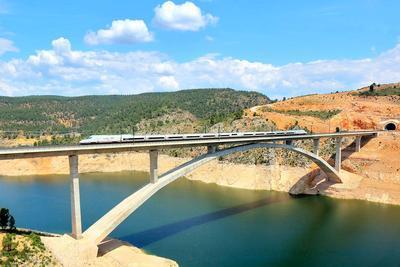 Renfe 102 puzzle, based on an original photo by Konstantin Davidov (photo copyright Konstantin Davidov -- used with permission). Photographed at Minglanilla, Spain, May 18, 2018.