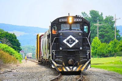Lehigh Railway U23B puzzle, based on an original photo by Tiffany Morley (photo copyright Tiffany Morley -- used with permission). Photographed at Sayre, Pennsylvania, July 3, 2018.