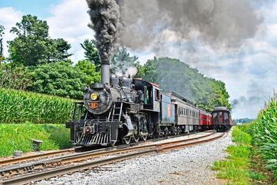 Strasburg Rail Road 2-6-0 puzzle, based on an original photo by Steve Jensen Jr. (photo copyright Steve Jensen Jr. -- used with permission). Photographed at Ronks, Pennsylvania, July 28, 2018