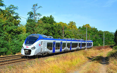 SNCF Régiolis Z 54900 puzzle, based on an original photo by Gerard Meilley (photo copyright Gerard Meilley -- used with permission). Photographed at Dieupentale (Tarn et Garonne), France, August 28, 2018.