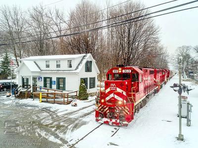 Vermont Rail System GP40-2 puzzle, based on an original photo by Kevin Burkholder (photo copyright Kevin Burkholder -- used with permission). Photographed at East Dorset, Vermont, November 20, 2018.