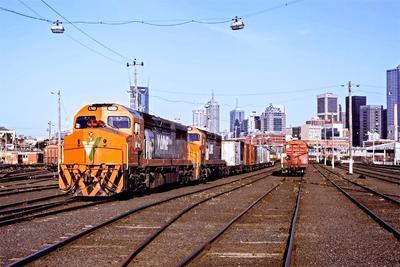 V/Line C Class puzzle, based on an original photo by Ian Green (photo copyright Ian Green -- used with permission). Photographed at North Melbourne, Melbourne, Australia, February, 1994.