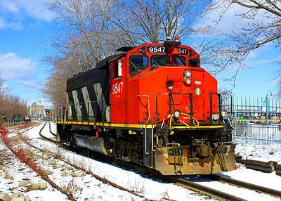 Canadian National Railway GP40-2L(W) puzzle, based on an original photo by Michael Berry (photo copyright Michael Berry -- used with permission). Photographed at Montreal, Quebec, April 10, 2019.