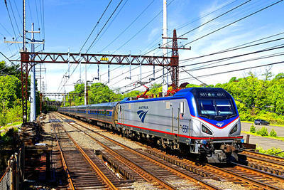 Amtrak ACS-64 puzzle, based on an original photo by Christopher Gore (photo copyright Christopher Gore -- used with permission). Photographed at Westport, Connecticut, May 18, 2019.