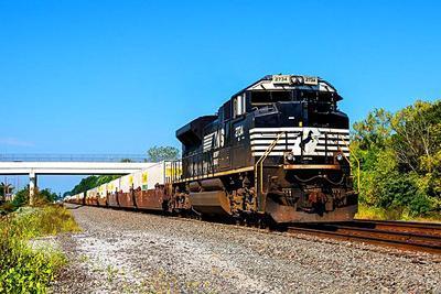 Norfolk Southern SD70M-2 puzzle, based on an original photo by Rich Kaminsky (photo copyright Rich Kaminsky -- used with permission). Photographed at North Ridgeville, Ohio, September 4, 2014.