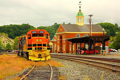 New England Central GP40CU puzzle, based on an original photo by Tim Stockwell (photo copyright Tim Stockwell -- used with permission). Photographed at White River Junction, Vermont, September 13, 2015.