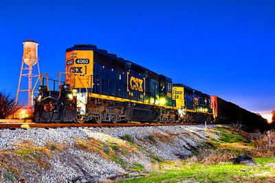 CSX Transportation (CSXT) SD40-3 puzzle, based on an original photo by Frank Orona (photo copyright Frank Orona -- used with permission). Photographed at Lanett, Alabama, December 11, 2018.