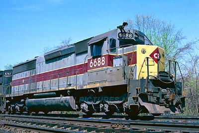 Conrail SDP45 puzzle, based on an original photo by Jim Appleman (photo copyright Jim Appleman -- used with permission). Photographed at Cove, Pennsylvania, April 29, 1978.