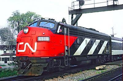 Canadian National Railway FP9 puzzle, based on an original photo by Marty Bernard (photo copyright Marty Bernard -- used with permission). Photographed at St. Lambert, Quebec, October, 1971.