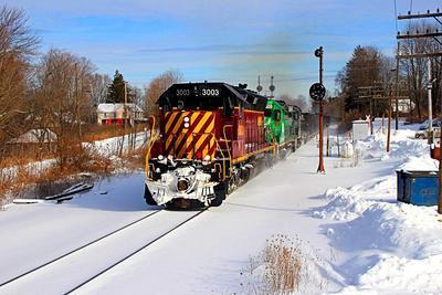 Allegheny Valley Railroad SD40-3 puzzle, based on an original photo by Noah Crissman (photo copyright Noah Crissman -- used with permission). Photographed at Mount Jewett, Pennsylvania, January 7, 2018.
