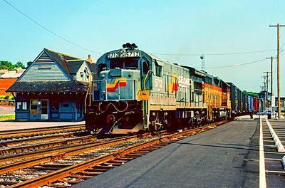CSX Transportation (CSXT) U36B puzzle, based on an original photo by Ted Grumbine (photo copyright Ted Grumbine -- used with permission). Photographed at Brunswick, Maryland, August 21, 1988.