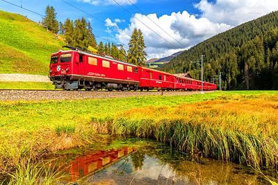 RhB - Rhätische Bahn Ge 4/4 I puzzle, based on an original photo by Axel Bozier (photo copyright Axel Bozier -- used with permission). Photographed at Davos, Switzerland, September 11, 2020.