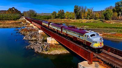 Canadian Pacific Railway FP9 puzzle, based on an original photo by Nick Hart (photo copyright Nick Hart -- used with permission). Photographed at Guttenberg, Iowa, October 20, 2022.