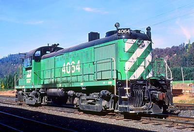 Burlington Northern Railroad RS-3 puzzle, based on an original photo by Roger Puta (photo copyright Roger Puta -- used with permission). Photographed at Bingen, Washington, October, 1978.