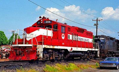 Yadkin Valley Railroad GP9 puzzle, based on an original photo by Joe Vittitoe (photo copyright Joe Vittitoe -- used with permission). Photographed at Rural Hall, North Carolina, May 9, 1996.