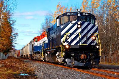 Chemin de fer Sartigan M420W puzzle, based on an original photo by Dannick Fournier (photo copyright Dannick Fournier -- used with permission). Photographed at Saint-Jean-Chrysostome, Quebec, October 14, 2023.
