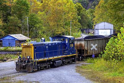 Beech Mountain Railroad SW1500 puzzle, based on an original photo by Matt Thomas (photo copyright Matt Thomas -- used with permission). Photographed at Alexander, West Virginia, October 7, 2023.