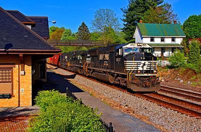 Norfolk Southern SD70M puzzle, based on an original photo by Sid Vaught (photo copyright Sid Vaught -- used with permission). Photographed at Abingdon, Virginia, May 8, 2014.