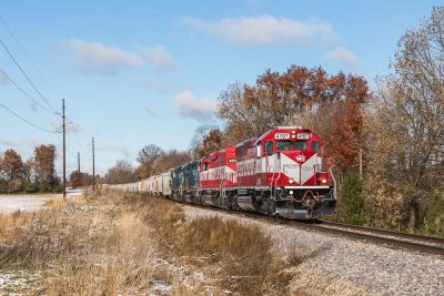 Wisconsin & Southern SD40-2 puzzle, based on an original photo by Adam Weddle (photo copyright Adam Weddle -- used with permission). Photographed at Edgerton, Wisconsin, November 10, 2025.